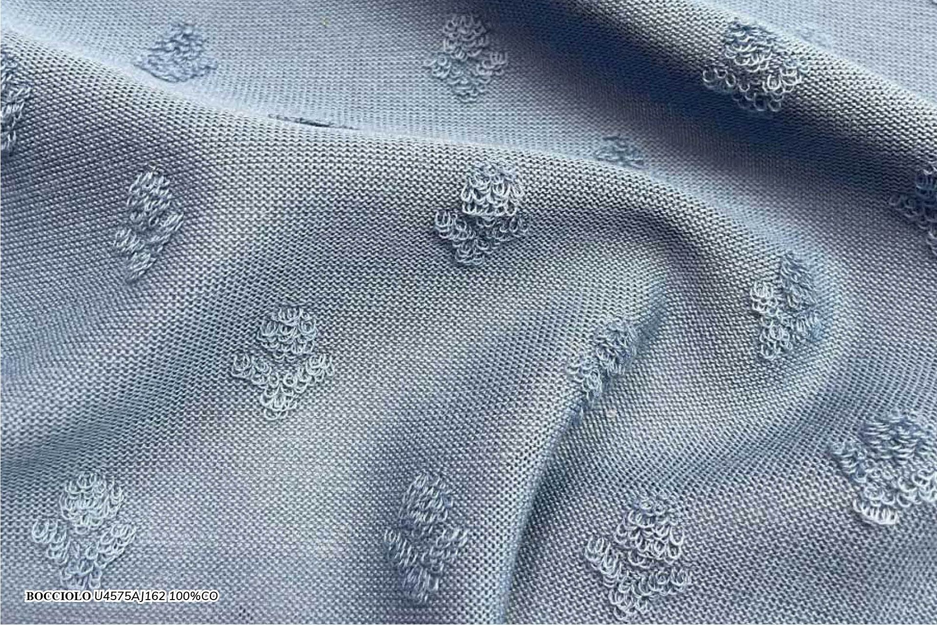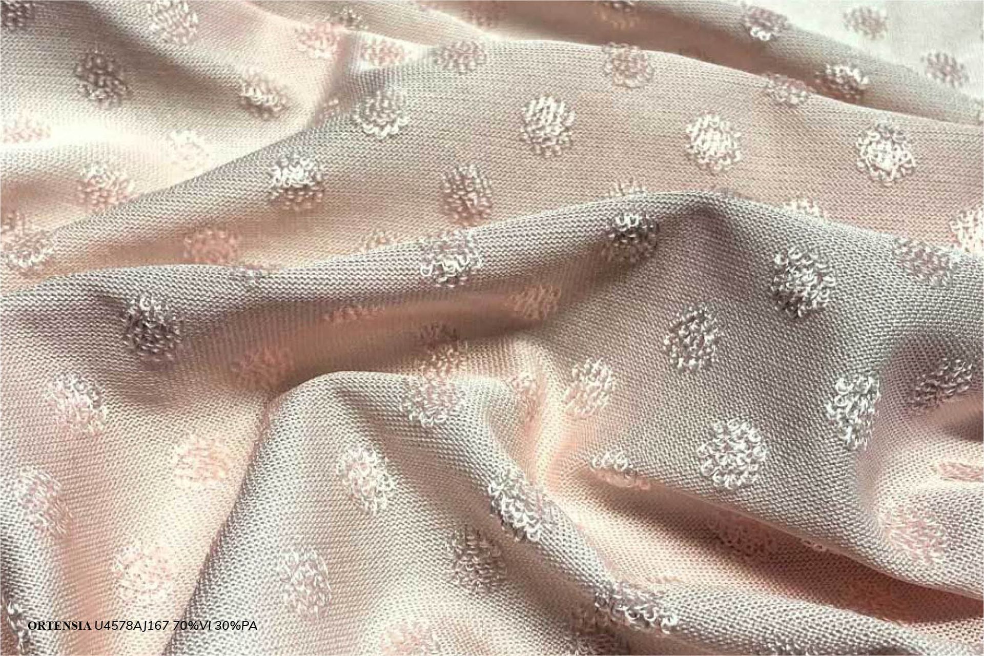 Disegno astratto jacquard con filo lamè come nuvole illuminate dal sole